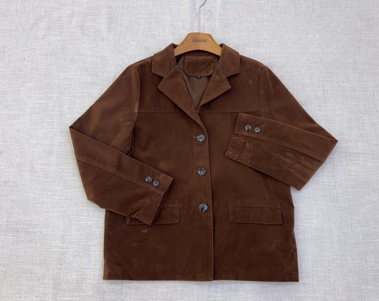 Chaqueta efecto antelina color marrón chocolate
